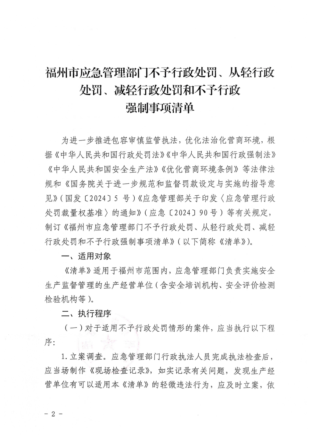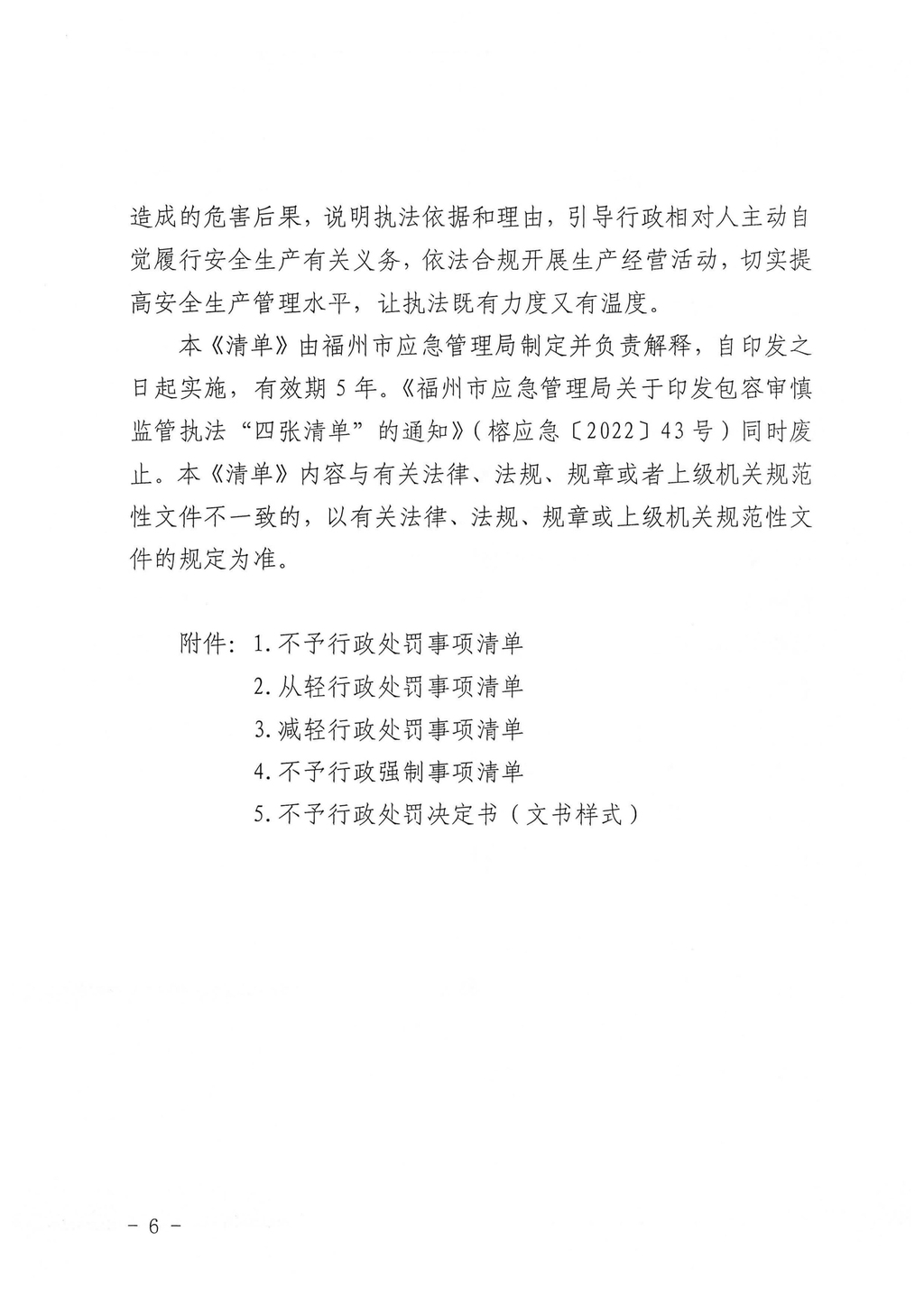 福州市应急管理局关于印发福州市应急管理部门不予行政处罚、从轻行政处罚、减轻行政处罚和不予行政强制事项清单的通知